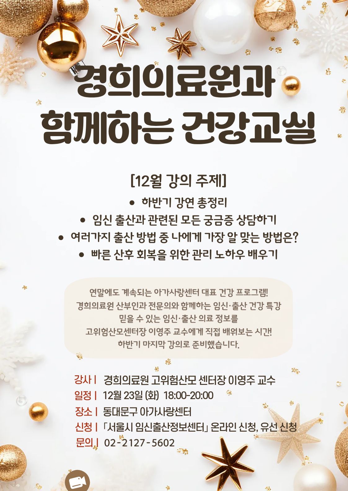 경희의료원과 함께하는 건강교실(고위험산모센터장 이영주 교수 - 하반기 마지막 강의)