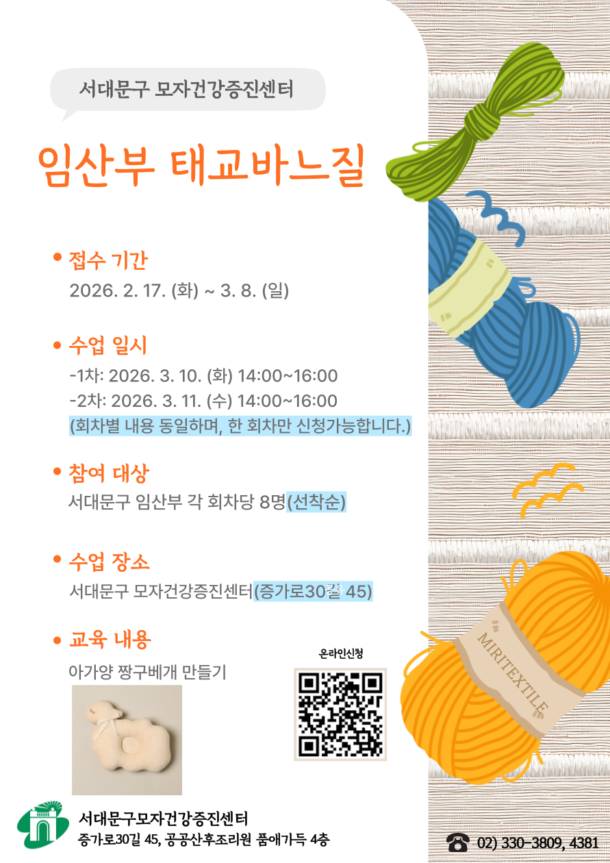 - 서대문구 임신부 각 회차당 8명(선착순)