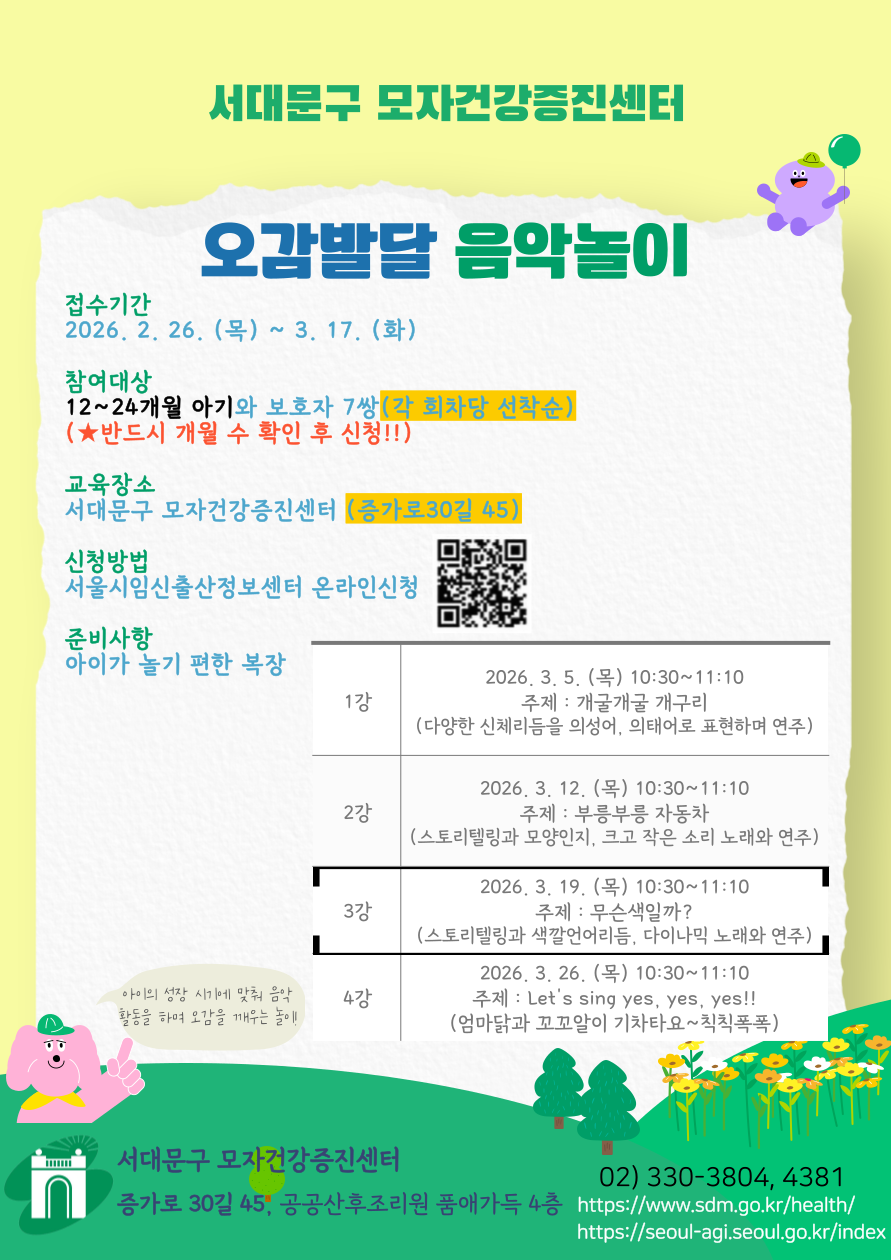 4. 교육 특성상 아이가 걷고 뛰는 활동이 포함되어 있습니다. 활동하기 편한 복장을 준비바랍니다.