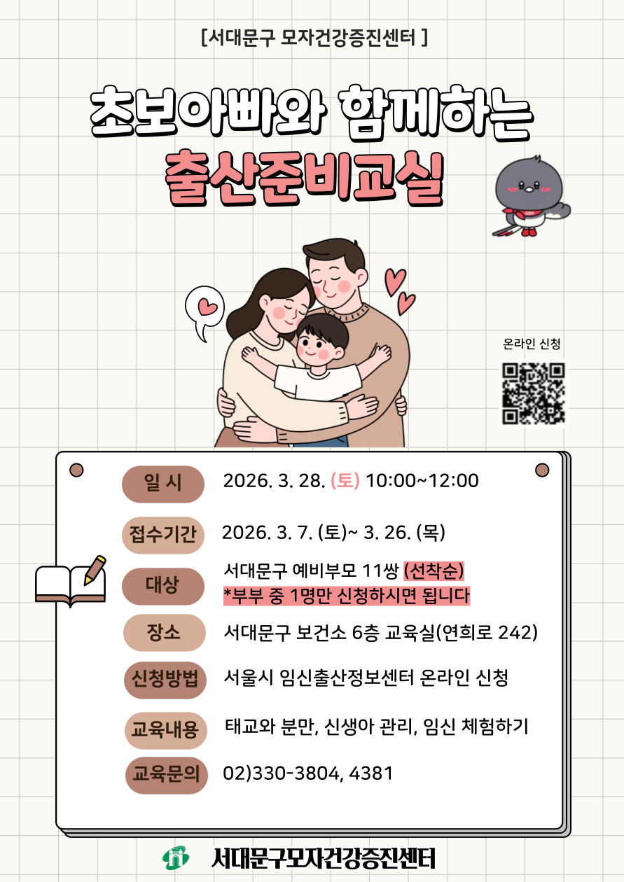 (3월)초보아빠와 함께하는 토요출산준비교실(*보건소 내부사정에 의해 교육대상 및 장소가 변경될 수 있습니다.)