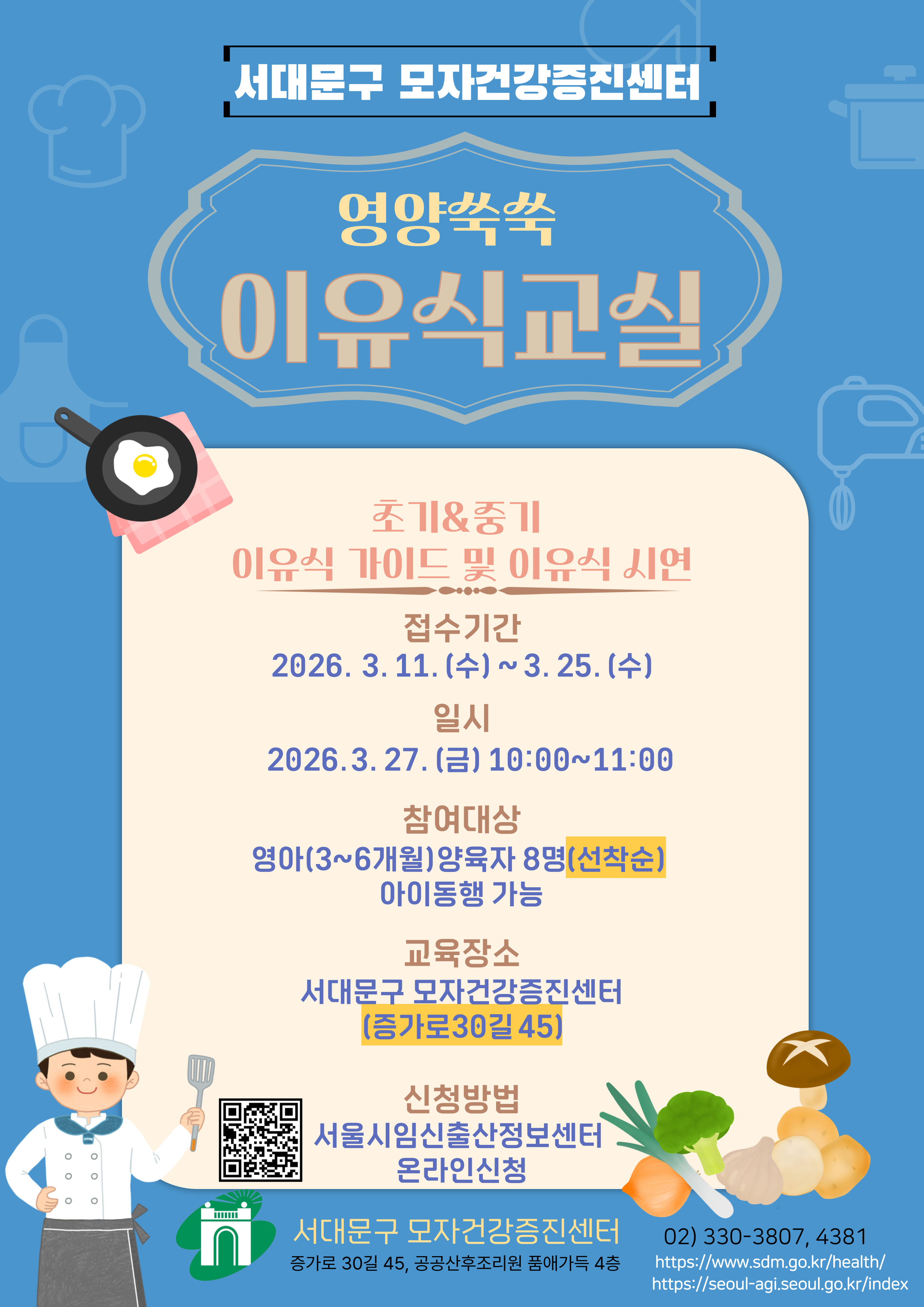 - 영아(3~6개월)양육자 8명(서대문구민 대상, 아이동행 가능)