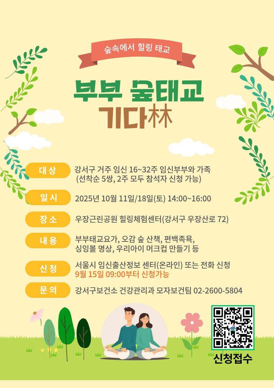 10월 부부 태교 숲 치유 프로그램(기다림) 신청 안내 ★대기자 전화신청★