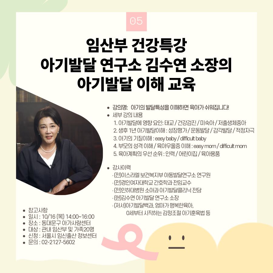 [임산부의 날 및 아가사랑센터 개소 1주년 특별 프로그램] 임산부 건강특강 - 아기발달 이해교육 (아기발달 연구소 김수연 소장) *임신부 우선접수*