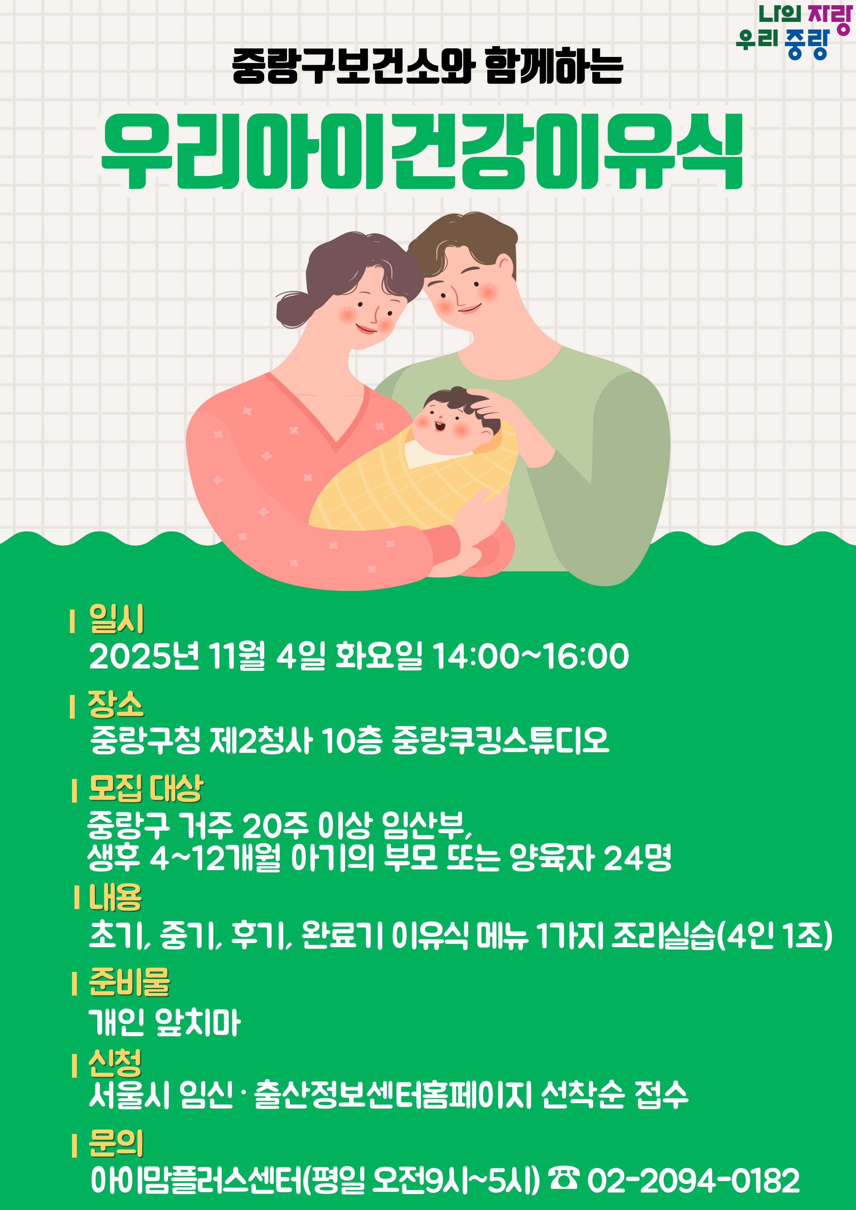 - 임신 20주이상 중랑구민, 생후 4개월~12개월 영아의 양육자